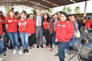 “Para que este ciclo escolar sea exitoso, hay un esfuerzo importante por parte de las instituciones que otorgan uniformes, desayunos escolares, reparan y construyen escuelas, entre otras; a lo que se suma el trabajo de maestros, maestras, estudiantes, familias y docentes” destacó el Jefe del Ejecutivo, al comprometerse a terminar el auditorio del plantel.
