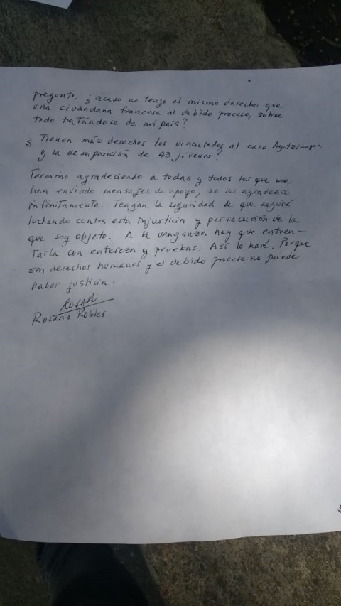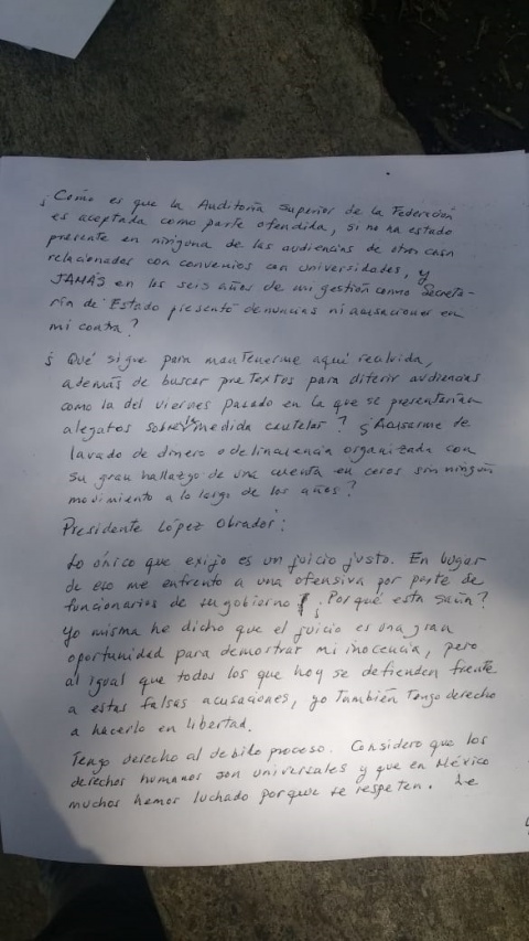 Esta mañana, la hija de la exfuncionaria federal, Mariana Moguel leyó una carta escrita por su madre en la que cuestiona el por qué tienen más derecho a un debido proceso los vinculados al caso Ayotzinapa o una ciudadana francesa acusada de secuestro.