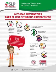 Entre las recomendaciones está evitar que menores de edad los detonen, usar un encendedor de mecha larga, colocar el cohete en el suelo y nunca en la mano, no arrojarlos cerca de autos, personas o animales, no aventarlos dentro de lotes baldíos o lugares con maleza.