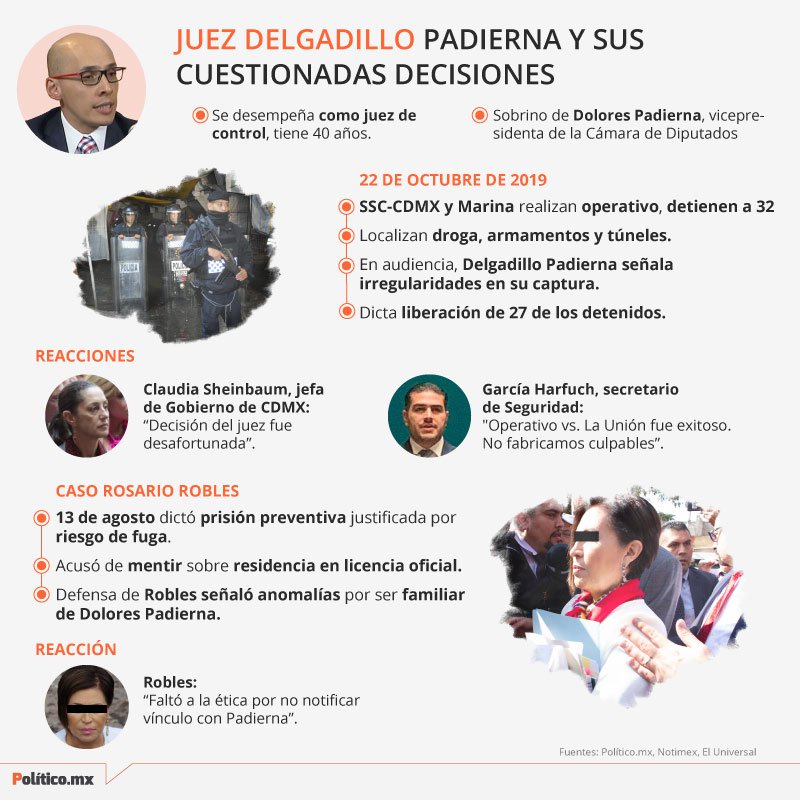 El juzgador Felipe de Jesús Delgadillo Padierna, ha sido cuestionado por la familia de Rosario Robles por su actuar, debido a los vínculos familiares que tiene con Dolores Padierna. Además generó polémica luego que dejó libres a 27 presuntos integrantes del grupo la Unión Tepito.