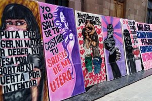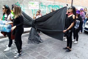 Al mismo tiempo, las fuentes de la Alameda y del Monumento de la Revolución fueron teñidas de rojo. También en una valla metálica que resguardaba el Palacio de Bellas Artes se instaló el memorial del feminicidio en México con más de mil 260 mujeres asesinadas. A las esculturas colocadas en avenida Juárez, reproducciones de obras de arte, les colocaron los símbolos en contra de la violencia y en pro del aborto.