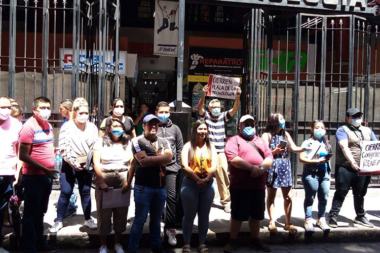 «Pedimos que se congelen las rentas, que se cierre este gran foco de infección; somos alrededor de 600 locatarios más empleados, estamos hablando de mil personas diarias y no se siguen los protocolos de seguridad en salud para tanta gente, estamos pidiendo que se cierre la plazas».
