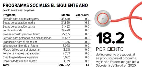 En total, serán 11 programas que tendrían un presupuesto inercial por 261 mil millones de pesos. Al único programa al que se le propone un aumento es a las becas de educación media, de 16.6% real. Los programas de justicia laboral tampoco tendrían aumentos en 2020.