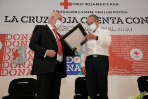 San Luis Potosí.- En el marco del arranque de la Colecta 2020 de la Cruz Roja Mexicana en San Luis Potosí, el Gobernador Juan Manuel Carreras López, acompañado de la Presidenta Honoraria de la institución, Lorena Valle Rodríguez y del delegado de la misma, Jesús Ernesto de la Maza Jiménez, convocó a la sociedad y a los sectores público y privados a solidarizarse con esta organización humanitaria con donativos vía electrónica, ya que despeña una labor imprescindible, y que aporta durante la actual emergencia sanitaria por el COVID-19.
