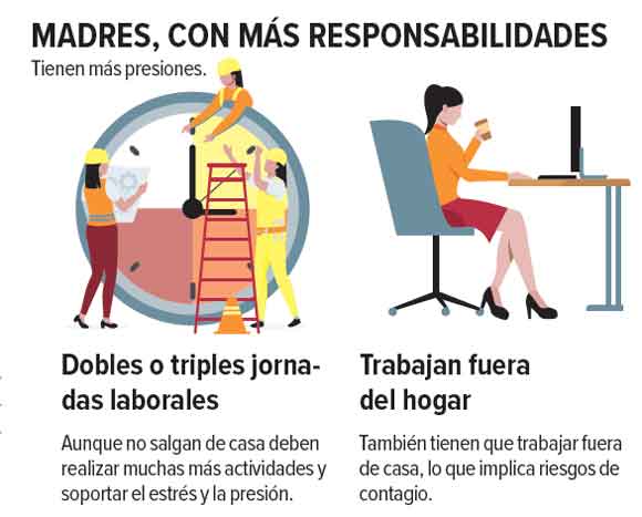 «Durante la cuarentena las madres se están enfrentando a más estrés y presión emocional debido a las dobles o triples cargas de trabajo. El hecho de que todos los integrantes de la familia estén las 24 horas del día en la vivienda representa mayores cargas laborales con pocos o nulos periodos de descanso”, comentó la especialista en entrevista con Excélsior.