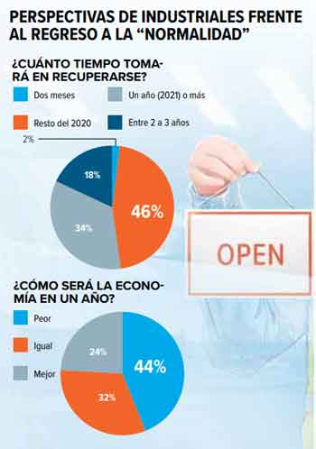 En la segunda encuesta del Observatorio Mipyme se reveló que el 46% de los participantes del sondeo esperan que la recuperación de la situación económica se dé el resto del 2020. Un 33.5% consideró que llevará un año más, por lo menos hasta el primer trimestre de 2021 y el 18.5% opinó que entre dos y tres años.