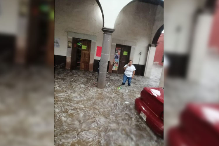Ante esta intensa corriente de agua, granizo y fuertes vientos sorprendió a los habitantes de la cabecera municipal.