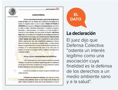 Sin embargo, el juzgador dijo que el organismo “ostenta un interés legítimo como una asociación cuya finalidad es la defensa de los derechos a un medio ambiente sano y a la salud”.