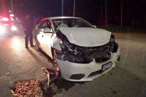 Pero al llegar a la Unidad Deportiva Municipal, cruzó el carril contrario y su unidad fue chocada en el costado derecho, por un vehículo marca Nissan Sentra color blanco, de modelo reciente, que era conducido por una mujer.