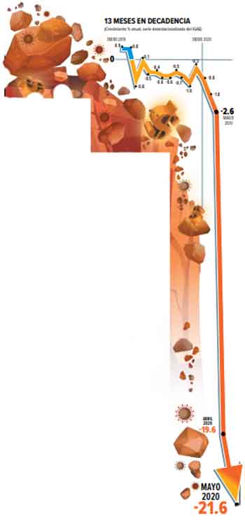 Ciudad de México.- La economía nacional colapsó en mayo al no soportar el confinamiento y el paro de actividades.