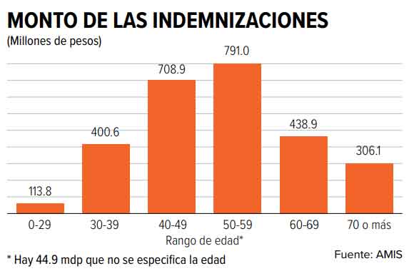 Hasta el 10 de agosto tenían registradas seis mil 641 personas afectadas con seguros de gastos médicos mayores, cuyas reclamaciones ascienden a dos mil 804.6 millones de pesos, además de ocho mil 267 personas fallecidas que contaban con seguro de vida, cuyas indemnizaciones suman mil 683.4 millones de pesos.