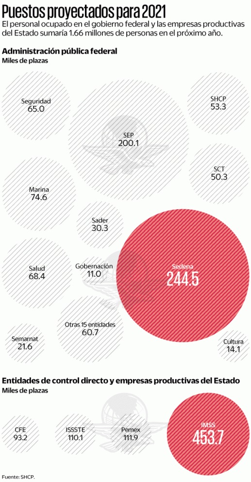 Este monto es el mismo que se autorizó para 2019 y 2020, para reducir el número de personal en la administración pública federal en línea con la política de austeridad.