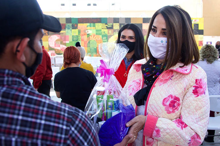 En su intervención, la directora del Instituto de las Mujeres (IMES), Érika Velázquez Gutiérrez, dio a conocer que a través de la gestión ante el Instituto Nacional de las Mujeres, se obtuvieron recursos para adquirir artículos de primera necesidad, medicamentos, kits de higiene personal y de limpieza, mismos que se entregan en donativo a la Casa de la Caridad Hogar del Migrante.