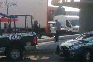 San Luis Potosí.- Esta mañana, se implementó un operativo policiaco en un puente peatonal de la carretera 57´, a la altura de calle Topacio, luego de reportarse el hallazgo de una hilera con presuntos restos humanos.