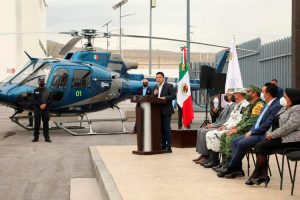 El Mandatario puso al servicio de la sociedad un total de 43 integrantes de Fuerzas Especiales a quienes simbólicamente se les colocaron sus insignias; así como tres vehículos tipo “Rino”, 8 nuevas patrullas tipo Pick Up, dos ambulancias y una aeronave para tareas de prevención, rescate y seguridad.
