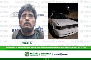 Uno de los hechos ocurrió en la calle de San Leonardo en la colonia Villas de San Francisco en Soledad de Graciano Sánchez, elementos Estatales detuvieron a Fermín P., de 49 años de edad a quien se le aseguró un automóvil marca Nissan, tipo Tsuru, color blanco, modelo 2001, sin placas el cual fue robado el día 26 de diciembre de 2021.
