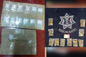A su vez, dentro de los dispositivos de seguridad y vigilancia realizados para inhibir las acciones constitutivas del delito en la región Huasteca dos hombres fueron detenidos, uno de ellos en el Municipio de Ciudad Valles sobre las calles Pedro A. Santos y Pedro J. Méndez, en la colonia Cuauhtémoc, agentes Estatales detuvieron a Noé de 20 años de edad, al asegurarle 10 bolsas con una hierba verde y seca con las características físicas de la marihuana.