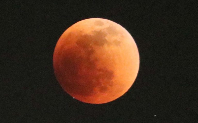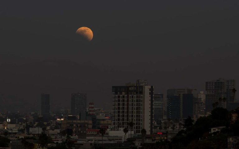 Ciudad de México.- El eclipse lunar total, también conocido como “luna de sangre”, que se pudo ver este domingo en México y otros países, inició su fase parcial a las 21:28 horas y en solo una hora dio paso a su fase total.