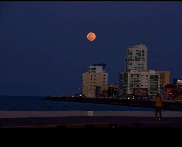 Otra de las fotos más impactantes, la tomó Elsita Cruz desde el puerto de Veracruz. De hecho, se aprecia perfectamente la luna de sangre, enmarcada en el malecón veracruzano.