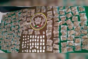 Al llevar a cabo una inspección, a dichas personas se les aseguraron 994 gramos de marihuana, distribuida en 152 bolsas plásticas, también se les aseguraron 49 dosis de la droga sintética conocida como “cristal”.