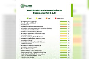 San Luis Potosí.- El Gobernador de San Luis Potosí, Ricardo Gallardo Cardona, lanzó este martes el nuevo Semáforo de Rendimiento Gubernamental, en seguimiento al modelo de transparencia impulsado para lograr un proceso de mejora permanente en el servicio a las y los potosinos, con ayuda de este informe público de la evaluación a las y los funcionarios y dependencias estatales.
