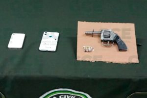 Por lo que mediante la implementación de un dispositivo se inicia la persecución del presunto hasta que se detuvo en calles adelante luego de impactar contra dos vehículos, asegurándose a Carlos “N” de 28 años y un arma de fuego tipo revólver y cinco cartuchos útiles.